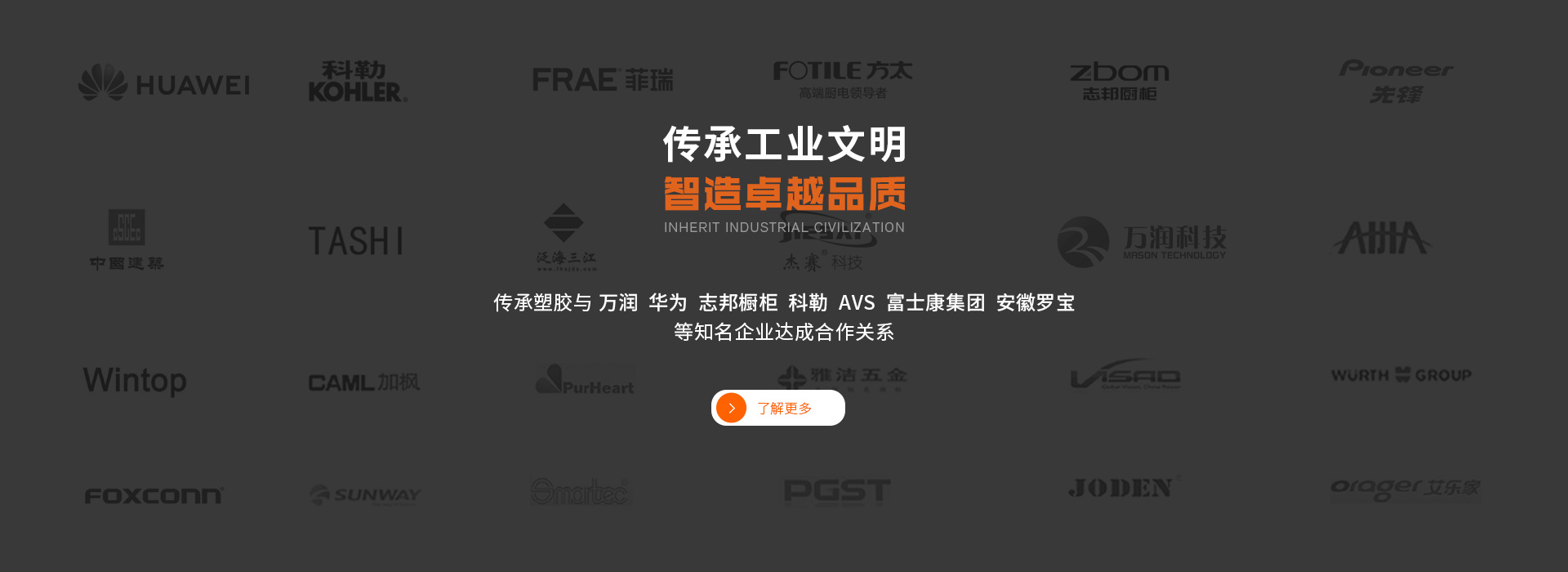 東莞傳承塑膠電子有限公司創立于2008年,位于世界制造業名城廣東省東莞市。以傳承工業文明 ,智造卓越品質為已任。經過十余年發展沉淀致力于打造為塑膠標準件行業的優秀標桿企業。現有職員50余人,業務遍及60多個國家和地區,服務多家知名企業,如:科勒華為、歐司朗 、方太、中國建筑工程公司、AVS等。 公司主營產品有塑料膨脹管,塑料螺絲保護帽,配線器材等類產品。經過十余年的研發創新與管理實踐,在渠道供應鏈,產品設計,生產管理方面具備較高專業的技能及大客戶服務能力。截至2020年底,累計申請有產品專利三十余項,能根據客戶要求開發模具及定做非標產品,產品符合環保認證,UL阻燃認證,抗老化UV認證等。 公司目前已成為國內外多家知名企業的長期合作伙伴,我們秉承“客戶第一,誠信 ,創新,合作共贏”的經營理念,愿與您攜手共同打造更加優質的產品與服務。